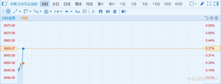 智通財經(jīng)APP獲悉,周三,美股基本平開,其中納斯達克指數(shù)盤初高走,升穿8046.315點,創(chuàng)紀錄新高。截至發(fā)稿,納指報8059.57,漲30點或0.37%。