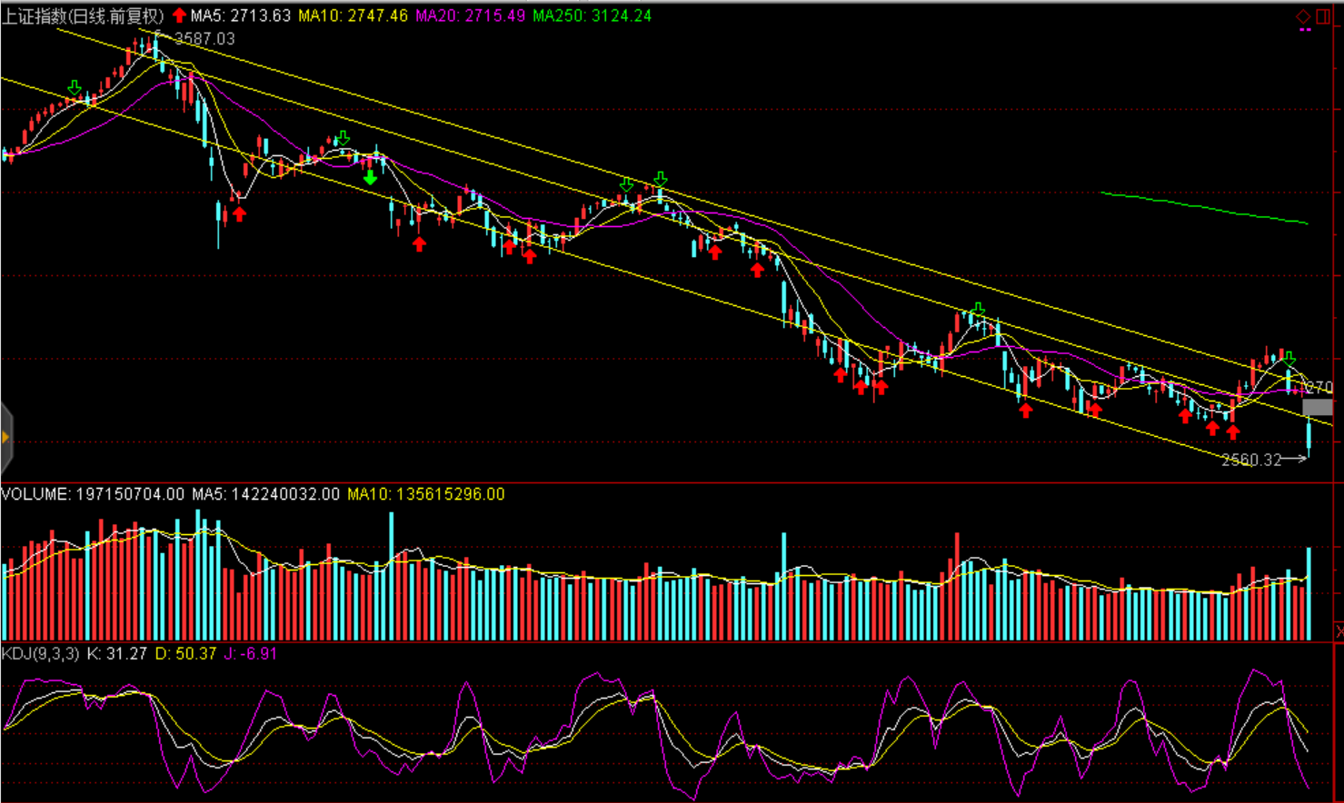 周四兩市股指大幅跳空低開(kāi)震蕩走低,各大股指均創(chuàng)出2年半以來(lái)單日最大跌幅。上證綜指收跌5.22%報(bào)2583.46點(diǎn),深證成指跌6.07%報(bào)7524.09點(diǎn),創(chuàng)業(yè)板指跌6.3%報(bào)1261.88點(diǎn)。兩市放量成交3586.21億元,環(huán)比大幅增加1225億元,創(chuàng)近兩個(gè)月新高。盤面看僅有西藏、天然氣及人民幣貶值板塊有所上漲外全盤皆綠,市場(chǎng)普跌,超過(guò)1000家公司跌停。