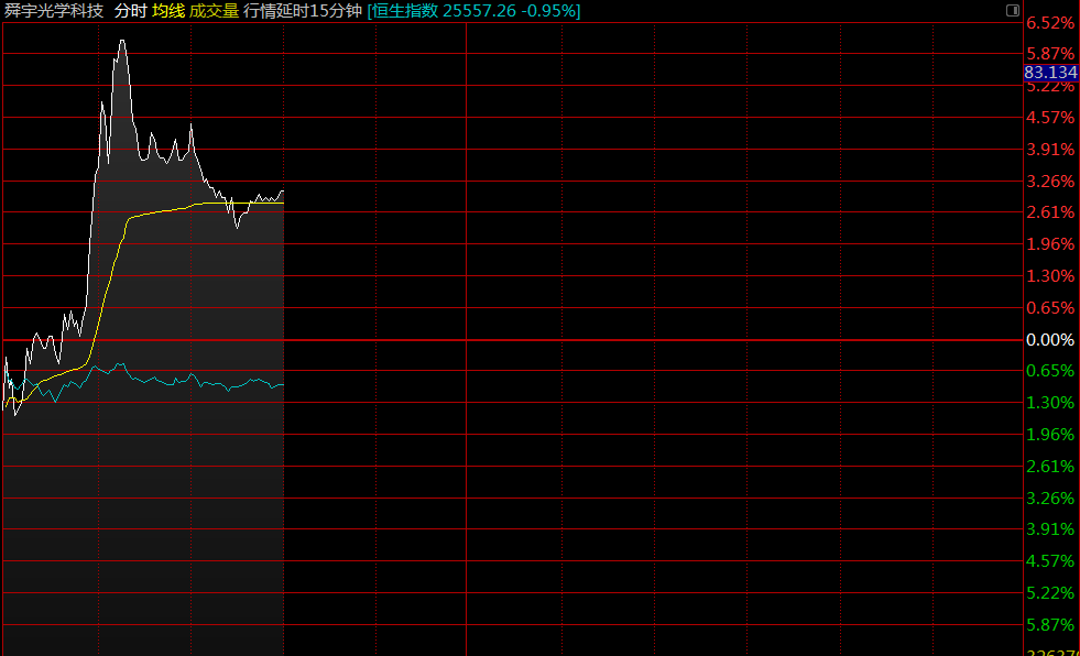 智通財經(jīng)APP獲悉,9月手機鏡頭出貨量同比增61%,舜宇光學(xué)(02382)早盤股價直線拉升,截至10時07分,漲6.08%,報價83.75港元,成交額2.68億。