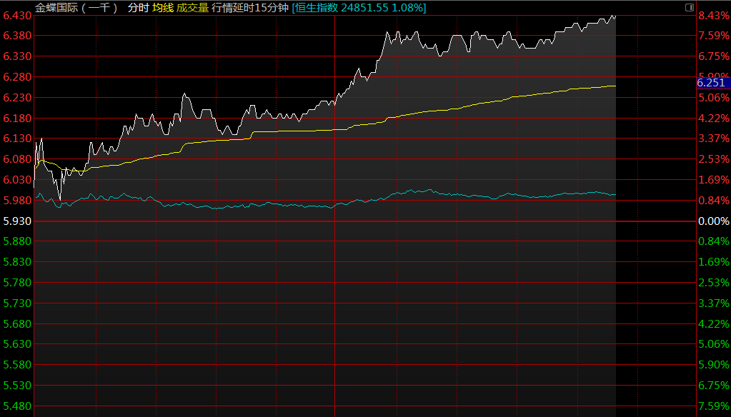 智通財(cái)經(jīng)APP獲悉,花旗首予金蝶國際(00268)“買入”評(píng)級(jí),目標(biāo)價(jià)看高至10.1港元,午后漲幅擴(kuò)大,截至13時(shí)49分,漲7.25%,報(bào)價(jià)6.36港元,成交額2.18億。