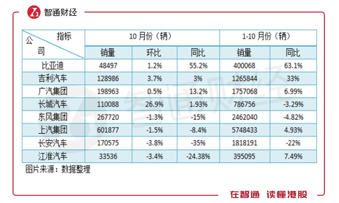 目前大部分車企基本都公布了10月份及首10個月的汽車銷量情況,智通財經(jīng)APP將這些公布銷量的車企整理如下表: