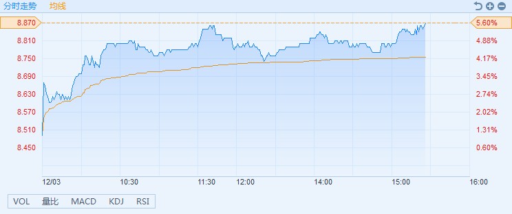 智通財經(jīng)APP獲悉,前10月發(fā)動機(jī)銷量56.6萬臺同比增8.8%,濰柴動力(02338)股價造好,截至15時25分,漲5.6%,報價8.87港元,成交額1.35億。