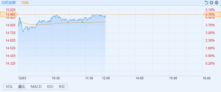 智通財(cái)經(jīng)APP獲悉,本屆G20峰會(huì)上,中美就經(jīng)貿(mào)問題達(dá)成共識,決定停止升級關(guān)稅等貿(mào)易限制措施。貿(mào)易摩擦的超預(yù)期緩和,為小米憑借商業(yè)模式創(chuàng)新和技術(shù)創(chuàng)新參與國際競爭松綁,該股股價(jià)應(yīng)聲而漲。截至13時(shí)05分,漲4.76%,報(bào)價(jià)14.96港元,成交額4.03億。