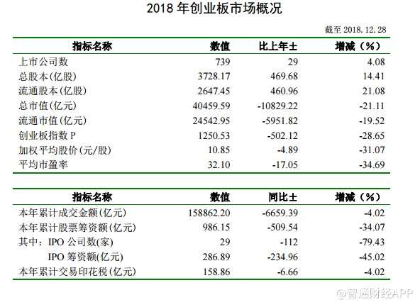 創(chuàng)業(yè)板上市公司739家,增4.08%,總市值40459.59億元,跌21.11%。加權(quán)平均股價(jià)跌31%。平均市盈率32倍。(文文)