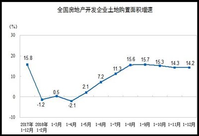 2018年房地產(chǎn)開發(fā)企業(yè)土地購置面積為29142萬平方米,比上年增長14.2%,比上年回落1.6個百分點;土地成交價款16102億元,增長18.0%,比上年回落31.4個百分點。