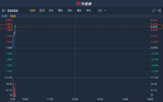 智通財(cái)經(jīng)APP獲悉,中信建投(06066)A股早盤打開漲停后又快速封板,H股跟隨上漲,截至9時(shí)37分,漲4.8%,報(bào)7.86港元,成交額額達(dá)3681萬(wàn)港元。(閔釧)