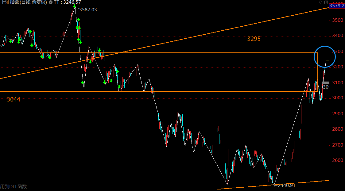 日線看,上證指數(shù)這里接近大級(jí)別中樞的上軌3295點(diǎn),這里短線大概率會(huì)震蕩回落,一蹴而就的可能性不大。