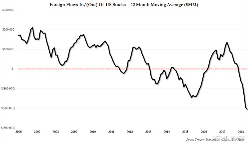 在過去的12個(gè)月里,外國(guó)投資者總共拋售了了2050億美元的美國(guó)公司股票,這是有記錄以來(lái)外國(guó)投資者對(duì)美股進(jìn)行的最大規(guī)模的減倉(cāng)。(林雅蕓)