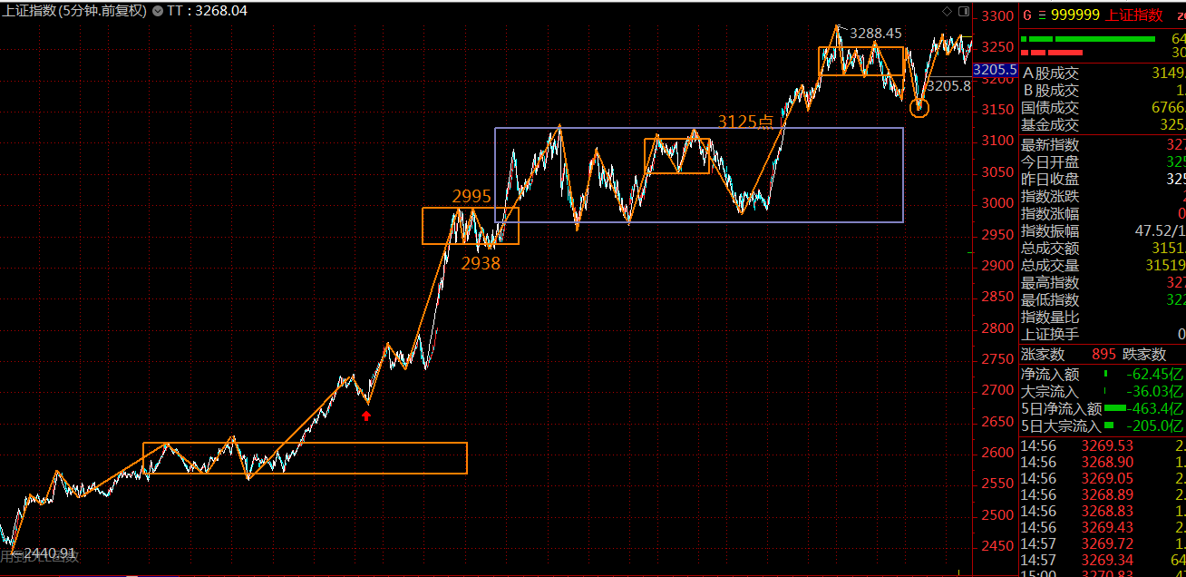 上證指數(shù)依然相對(duì)強(qiáng)勢(shì),可以看到,周二的恐慌低點(diǎn)正好對(duì)應(yīng)了30分鐘的第三類買(mǎi)點(diǎn),后續(xù)在前高位置止步不前需引起注意,這里已進(jìn)入了背馳段,如若周一不能強(qiáng)勢(shì)拉起,則需謹(jǐn)防大盤(pán)這波春季上漲趨勢(shì)終結(jié)的風(fēng)險(xiǎn)。