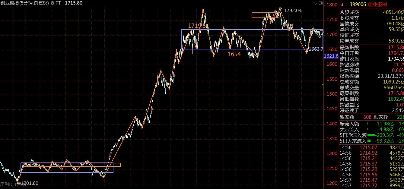 創(chuàng)業(yè)板這里走弱了已經(jīng),上周一、周二的調(diào)整打到了中樞下軌,這是一次警告,上拉后始終不能站上中樞上軌,是為弱勢(shì),本周關(guān)注1654點(diǎn)的支撐,謹(jǐn)防第三類賣(mài)點(diǎn)的出現(xiàn)。