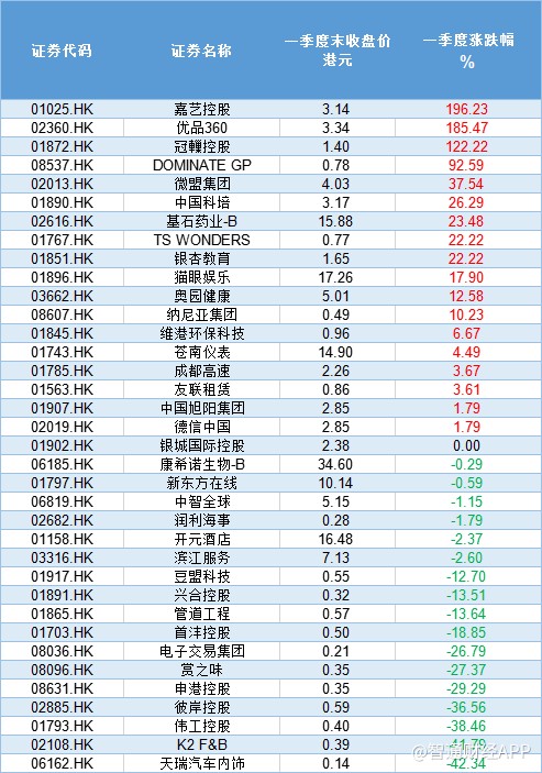 另外,截至一季度底,36只新股中,共有14只股失守發(fā)行價(jià),破發(fā)率為39%。值得的注意的是,相比于2018年港股新股70%的破發(fā)率,2019年一季度的破發(fā)率有明顯的下降。其中,天瑞汽車內(nèi)飾以42.36%,成為一季度市場(chǎng)表現(xiàn)最差新股。而嘉藝控股則以196.23%的漲幅,成為一季度市場(chǎng)表現(xiàn)最牛新股。(陳嘉林)