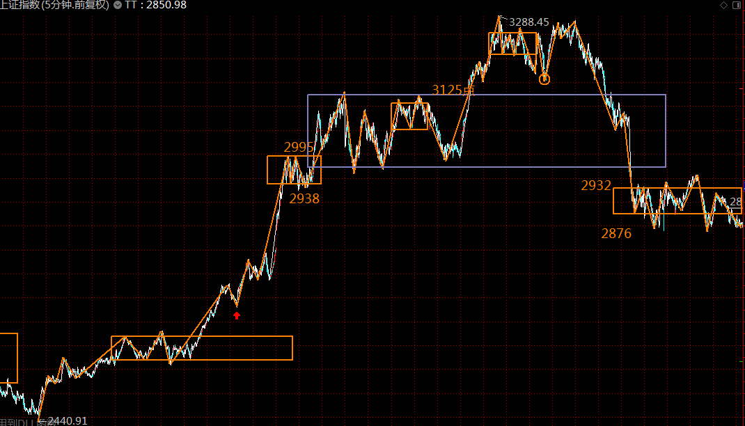 下圖為上證指數(shù)五分鐘級別走勢結(jié)構(gòu),第三類賣點(diǎn)已過,第一類買點(diǎn)正在構(gòu)建中,預(yù)計最差的情況,周一周二即可走完這波調(diào)整走勢,第一目標(biāo)回補(bǔ)上方3050處的貿(mào)易戰(zhàn)缺口。