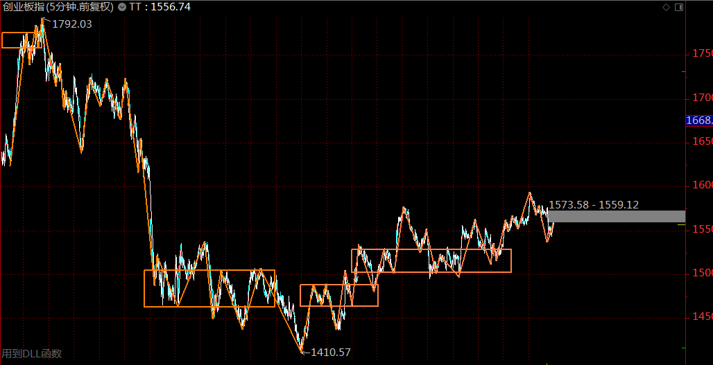 創(chuàng)業(yè)板這里仍然走的較為強勢,需要關注1530點的支撐,只要不跌回下方的三十分鐘中樞,都可視作是在構(gòu)建第三類買點。結(jié)合滬指的情況來說,這里盤整背馳的概率更大,預期在下周初反彈后,創(chuàng)業(yè)板指數(shù)將會跌回三十分鐘中樞區(qū)間。