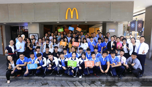 麥當(dāng)勞2018全國招聘周深圳新聞發(fā)布會,現(xiàn)場體驗學(xué)生代表合影