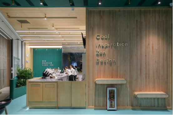 茶文化作為中國文化中從古至今的瑰寶,一直貫穿于喜茶的空間設(shè)計中。木基調(diào)材質(zhì)和綠色的設(shè)計元素讓消費者在品茗茶飲之前,就感受到茶飲的新鮮和別致。