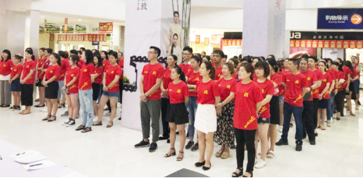 會議開始,各店服裝統(tǒng)一,精神抖擻