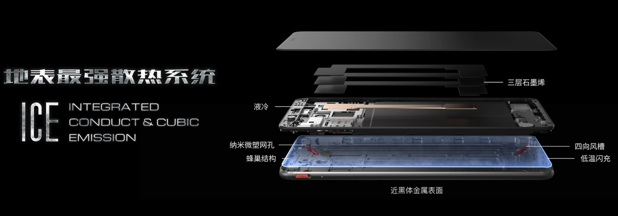 與此同時(shí),努比亞紅魔Mars延續(xù)和改進(jìn)了前代機(jī)型所獨(dú)創(chuàng)的風(fēng)冷散熱設(shè)計(jì)。通過標(biāo)志性的四向?qū)α黠L(fēng)槽和蜂巢式散熱口設(shè)計(jì),能夠有效利用熱空氣的自然膨脹、流動(dòng)特性,迅速將內(nèi)部分散的熱量排出機(jī)身。這樣一來,相比傳統(tǒng)只有熱管導(dǎo)熱的方案,努比亞紅魔Mars“液冷+風(fēng)冷”的全新散熱體系,就完美實(shí)現(xiàn)了機(jī)身內(nèi)部熱量的傳導(dǎo)+發(fā)散,一舉解決了舊世單純熱管導(dǎo)熱設(shè)計(jì)所引發(fā)的機(jī)身發(fā)熱問題。
