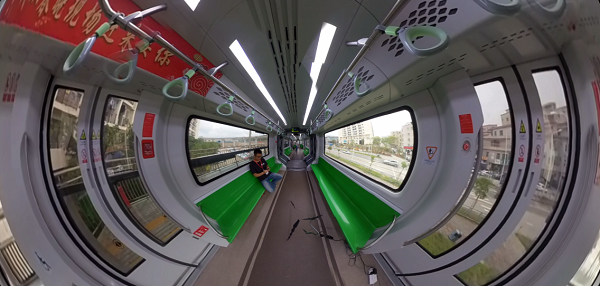 比亞迪云軌可廣泛用于一二線城市的交通接駁線、加密線,三四線城市的交通主干線,以及旅游景區(qū)的觀光線等場景。結(jié)合云軌視頻回傳等重點(diǎn)業(yè)務(wù)場景,云軌車內(nèi)安裝了360球機(jī)攝像頭,通過5G網(wǎng)絡(luò)傳輸實(shí)時(shí)回傳拍攝到的全景視頻畫面。遠(yuǎn)程操控人員借助VR眼鏡及大屏幕觀看云軌高清視頻畫面,以第一視角控制和監(jiān)測云軌運(yùn)行狀況,能在第一時(shí)間發(fā)現(xiàn)異常,迅速做出反應(yīng),預(yù)防交通危險(xiǎn)。