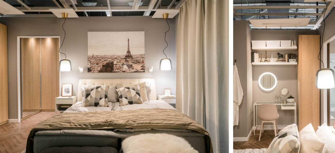 為了做好這次全新臥室設(shè)計(jì),給顧客帶來更多的家居靈感,深圳商場的室內(nèi)設(shè)計(jì)師們通過走進(jìn)消費(fèi)者家中進(jìn)行家訪、研讀相關(guān)報(bào)告、切合實(shí)際生活場景,根據(jù)中國人的臥室需求和睡眠情況,精心打造了全新12間臥室展間。