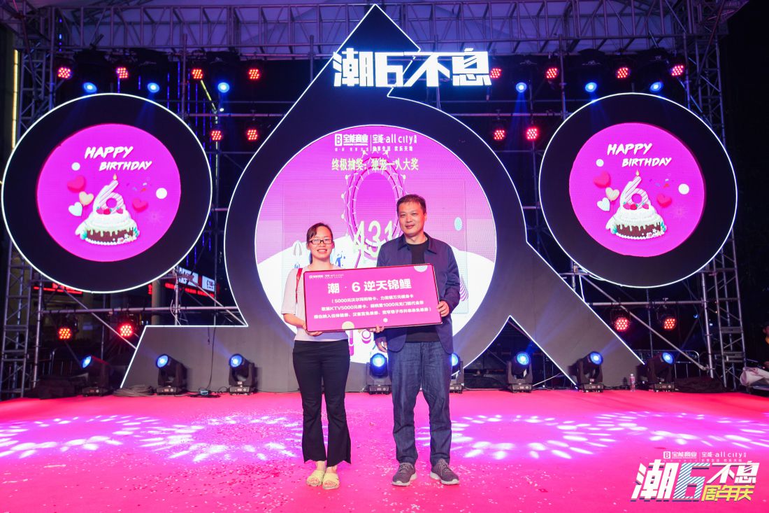 寶能商業(yè)副總經(jīng)理朱君為周年慶錦鯉大獎(jiǎng)獲得者頒獎(jiǎng)