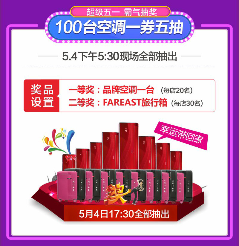 1、一券五抽,100臺(tái)空調(diào)重出江湖:4月20日-5月4日活動(dòng)期間,業(yè)主下定實(shí)付金額滿1000元即可參與空調(diào)大抽獎(jiǎng),滿1000兌換抽獎(jiǎng)券一張,滿2000兌換兩張,以此類推,上不封頂,一張抽獎(jiǎng)券可前往國安居深圳五店參與100臺(tái)空調(diào)大抽獎(jiǎng),五次中獎(jiǎng)機(jī)會(huì)哦!