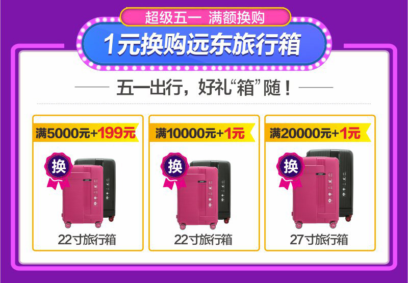 5、1元換購FAREAST旅行箱:活動(dòng)期間,顧客凡在店內(nèi)下定實(shí)付(多個(gè)訂單可累積)滿5000元可加199元換購22寸 FAREAST旅行箱;滿10000元可加一元換購22寸 FAREAST旅行箱,滿20000元加一元換購27寸FAREAST旅行箱,送完即止。