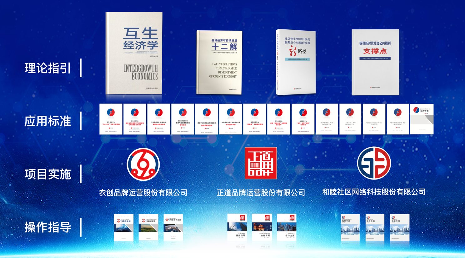 會(huì)上,北京互生經(jīng)濟(jì)學(xué)研究院發(fā)布了“農(nóng)創(chuàng)新抓手”“社區(qū)新范本”,以及由《互生經(jīng)濟(jì)學(xué)》著作人、北京互生經(jīng)濟(jì)學(xué)研究院院長何開秀教授領(lǐng)導(dǎo)課題研究辦公室專項(xiàng)課題組所著述的《縣域經(jīng)濟(jì)可持續(xù)發(fā)展十二解》《社區(qū)物業(yè)管理升級(jí)與服務(wù)業(yè)個(gè)性融合發(fā)展新路徑》《探尋新時(shí)代社會(huì)公共福利支撐點(diǎn)》幾本新書。農(nóng)創(chuàng)品牌運(yùn)營股份有限公司、正道品牌運(yùn)營股份有限公司、和睦社區(qū)網(wǎng)絡(luò)科技股份有限公司對(duì)農(nóng)創(chuàng)、和睦、正道三個(gè)項(xiàng)目做了解讀以及三個(gè)項(xiàng)目的國內(nèi)應(yīng)用者進(jìn)行了應(yīng)用成果分享。