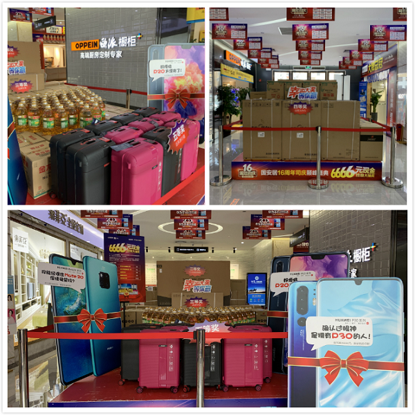 據(jù)了解,這場從6月14日持續(xù)至30日的司慶活動(dòng),國安居為業(yè)主朋友們準(zhǔn)備了六大鉅惠:1、司慶重磅獻(xiàn)豪禮,七店就送200臺(tái)華為手機(jī)!6.30當(dāng)天累計(jì)訂單(可多個(gè)品牌下定)實(shí)付滿15000元送遠(yuǎn)東旅行箱一個(gè),實(shí)付滿80000元送華為P20一臺(tái),實(shí)付滿150000元送華為mate20一臺(tái),實(shí)付滿250000元送華為P30手機(jī)一臺(tái);2、6月30日前,提前在國安居店面及微信16元搶購《司慶超抵卡》,活動(dòng)當(dāng)天簽到即可尊享6重超值豪禮;3、6月14日-6月29日活動(dòng)期間,顧客買單后微信分享活動(dòng),即可領(lǐng)取16-666元隨機(jī)金額現(xiàn)金紅包一個(gè),5000個(gè)現(xiàn)金紅包等您來瓜分!還有機(jī)會(huì)贏取終極大獎(jiǎng)華為P30哦;4、國安居16周年司慶公益義賣,驚現(xiàn)160元馬桶、160元爐灶、16元花灑、16元鞋柜……買到就是賺到!沒錯(cuò),就是這么任性;5、160萬現(xiàn)金聯(lián)單就返,6月30日活動(dòng)當(dāng)天,在國安居下定3個(gè)品牌以上(每個(gè)品牌實(shí)付滿3000元),即可參與聯(lián)單返現(xiàn)活動(dòng),多買多返,上不封頂;6、終極抽6666元現(xiàn)金大獎(jiǎng),6.15-6.30活動(dòng)期間,購物實(shí)付金額滿2000元可領(lǐng)取抽獎(jiǎng)券一張,滿4000元領(lǐng)取兩張,以此類推。
