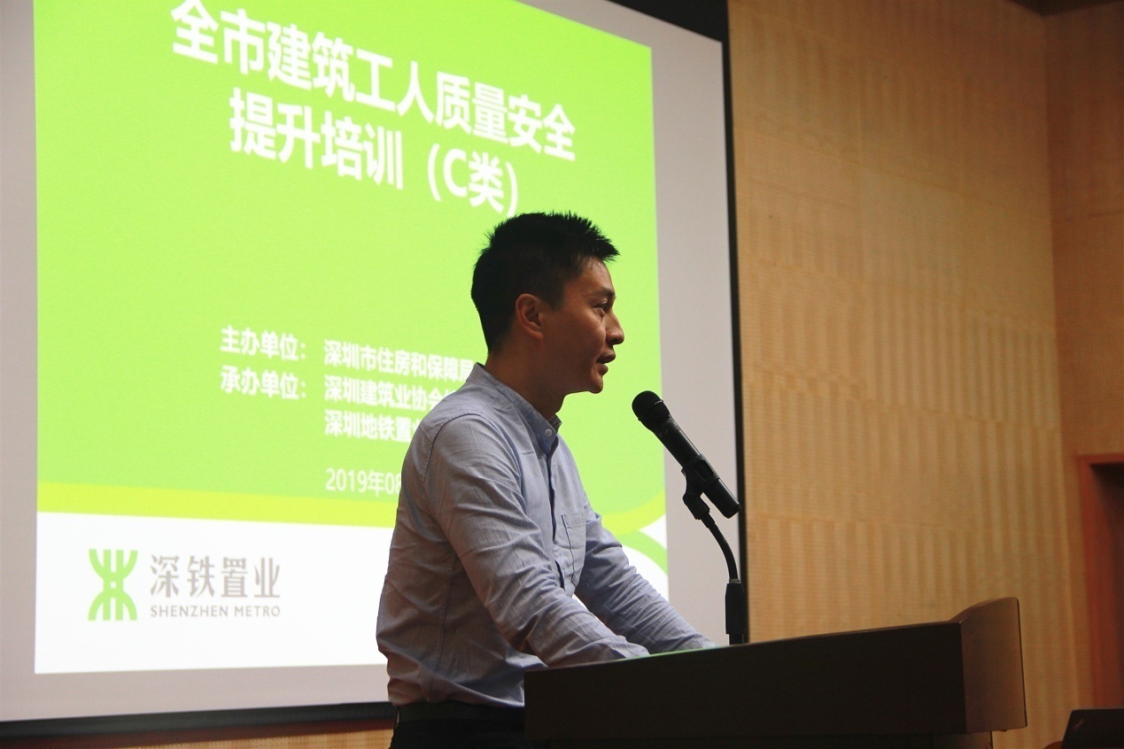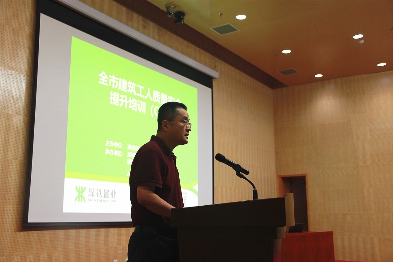 深圳市住房和建設(shè)局建筑市場和招標投標監(jiān)管處副處長董亮首先對一線工人表示親切的慰問,并對深圳地鐵置業(yè)集團積極響應(yīng)政府號召,扎實落實工人安全質(zhì)量培訓工作表示肯定。本次培訓是市住建局建筑工人質(zhì)量安全培訓提升工作方案的重要組成部分,接下來將在全市全面推行A、B、C、D、E五類培訓。由政府、企業(yè)、協(xié)會、培訓機構(gòu)四方力量共同攜手推進崗前崗后、場內(nèi)場外、線上線下培訓教育工作。今后,未經(jīng)過系統(tǒng)教育培訓的工人將禁止進入深圳市建筑市場。