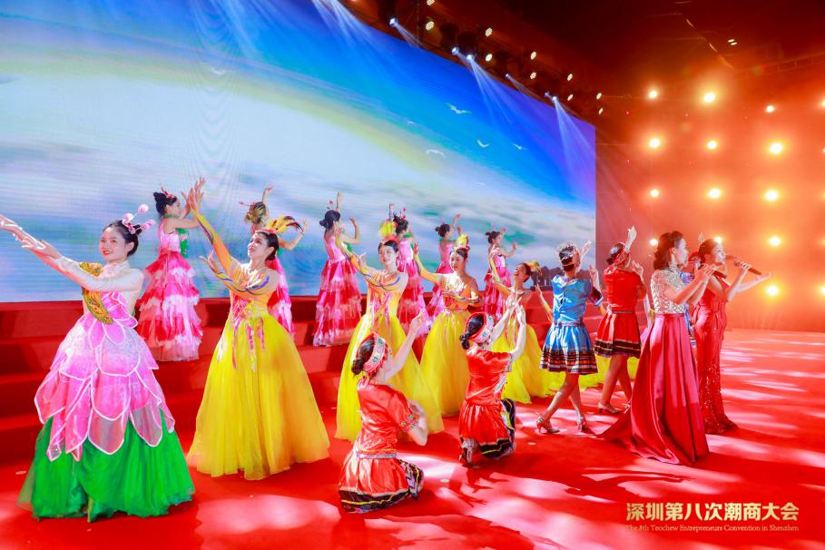 晚會上,一臺富有潮汕味的潮州大鑼鼓開場,緊接著少兒英歌舞,潮語歌曲聯(lián)唱、天津快板、童謠表演、建國七十周年經(jīng)典歌曲聯(lián)唱等節(jié)目輪番上演,為現(xiàn)場賓客獻上了一場獨具特色的視聽盛宴。大會在大合唱《歌唱祖國》的豪邁歌聲中落下帷幕,大家共祝潮商事業(yè)蓬勃發(fā)展,再創(chuàng)新輝煌?。◤埧∵_)