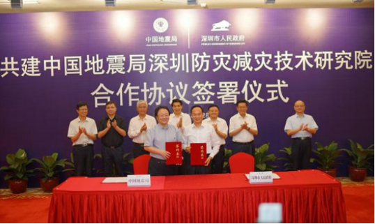 2017年8月28日,《中國地震局深圳市人民政府共建中國地震局深圳防災減災技術研究院合作協(xié)議》簽署儀式在深圳舉行,雙方將創(chuàng)新體制機制,在防災減災關鍵應用技術和智慧服務產品研發(fā)以及系統(tǒng)集成創(chuàng)新等方面開展合作,共同打造世界先進的防災減災技術研發(fā)機構。