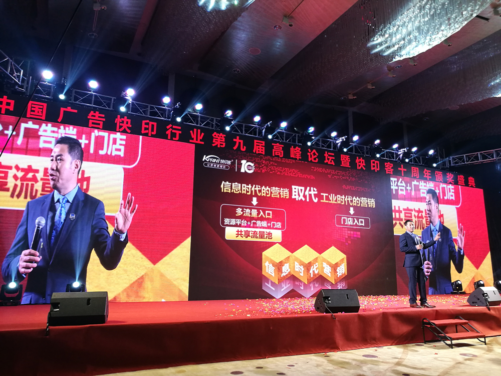 K-Print河南新鄉(xiāng)旗艦店崔總做“K-Print,共創(chuàng)廣告策劃行業(yè)美好新明天”主題演講。崔總分享了他與KP店結(jié)緣的故事,依托KP店重塑企業(yè)品牌,運(yùn)用“互聯(lián)網(wǎng)+技術(shù)營(yíng)銷”創(chuàng)新模式推動(dòng)企業(yè)及行業(yè)的轉(zhuǎn)型與創(chuàng)新,為廣告快印企業(yè)鋪就了一條騰飛美好明天的快車道。