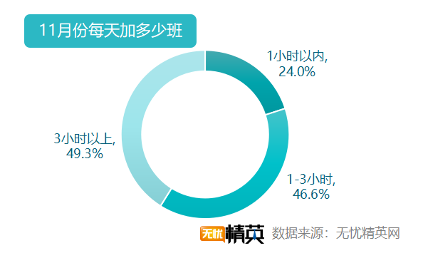 因?yàn)殡p11而加班的職場精英中,有49.3%的人,11月上旬平均每天需要加班3小時(shí)以上,別人忙著購物,而他們忙著加班;46.6%的人,加班時(shí)間1-3小時(shí);24%的人,每天加班時(shí)間在1小時(shí)以內(nèi)。雙11的前兩天往往是最緊張的,今年恰好是周末,加班也由晚上加班,變成了全天加班,從業(yè)者更是辛苦一些。