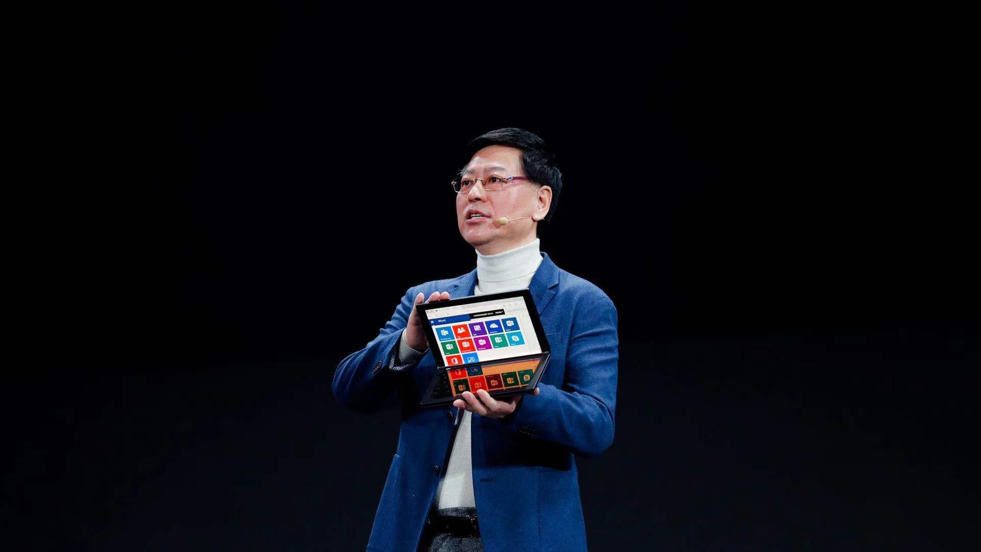 楊元慶現(xiàn)場展示全球首款折疊屏筆記本電腦ThinkPad X1
