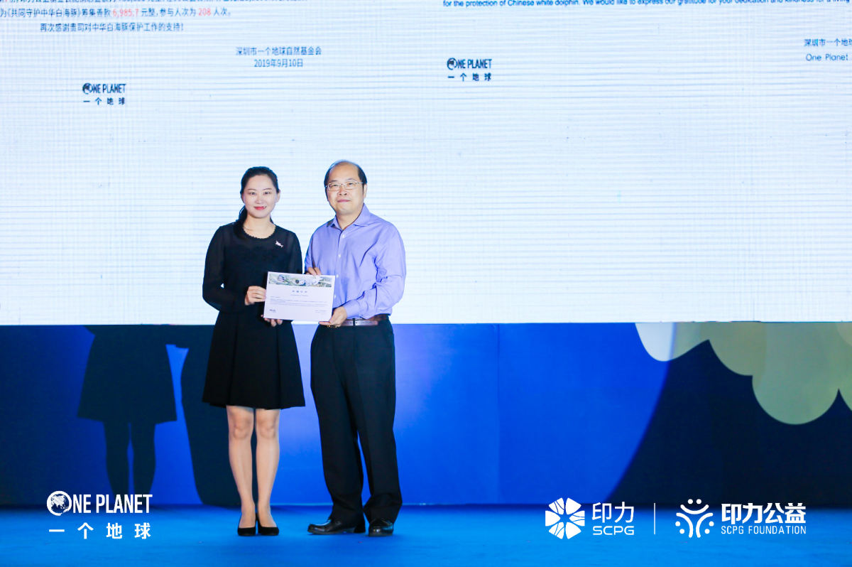 保護(hù)中華白海豚除了政府在領(lǐng)航前行,更有像印力公益基金會(huì)等組織在默默付出、前赴后繼,他們以最實(shí)際的支持,為推動(dòng)人與自然和諧的相處做出貢獻(xiàn),喚醒每個(gè)人內(nèi)心深處的海洋夢(mèng)!在熱烈的掌聲中,迎來(lái)了一個(gè)地球自然基金會(huì)為印力公益基金會(huì)頒發(fā)捐贈(zèng)證書,感謝印力公益基金會(huì)為中華白海豚保護(hù)項(xiàng)目提供了捐贈(zèng),以實(shí)際行動(dòng)推動(dòng)了生物多樣性保護(hù)。