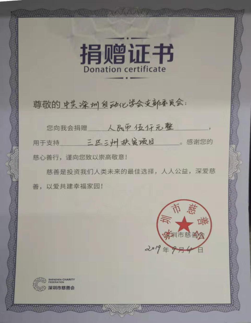 作為深圳成立最早的協會,深圳自動化學會一直將學會的黨建工作列為重點,適時開展活動,讓學會中企業(yè)單位暫無黨組的流動黨員們有一個“溫馨的家”。2019年,深圳自動化學會先后組織的活動有:組織會員單位的入黨積極分子參加了深圳市社會組織第一期發(fā)展對象培訓班;組織會員單位黨員集體參觀有關深圳改革開放40周年的專題展覽《大潮起珠江》;組織會員單位積極開展扶貧捐贈活動,有捐款、有圖書,還有電腦等教學設備,受到了相關單位的表彰和肯定。