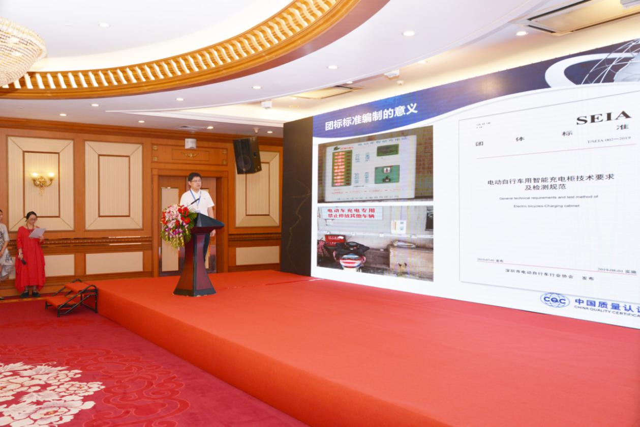 會議現(xiàn)場正式發(fā)布《電動自行車乘員頭盔技術要求及檢測規(guī)范》、《電動自行車用智能充電柜技術要求及檢測規(guī)范》和《電動自行車用鋰離子蓄電池技術要求及檢測規(guī)范》等三項團體標準,并舉行了“深圳市電動自行車行業(yè)安全標準先行示范啟動儀式”。中國質量認證中心總部郝鑫瑞、中國質量認證中心深圳分中心陳昱、深圳市計量質量檢測研究院楊東平分別對三項標準作了展示和解讀。
