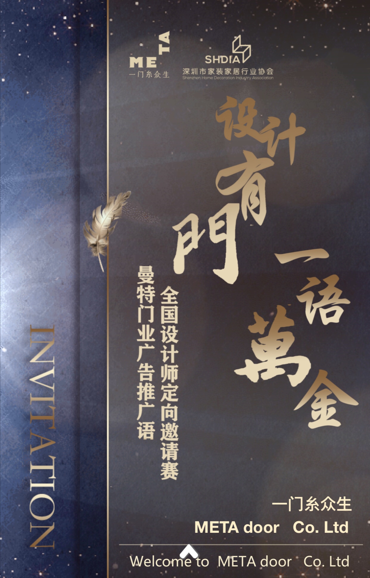 “設(shè)計(jì)有門,一語(yǔ)萬(wàn)金”深圳市家裝家居行業(yè)協(xié)會(huì)、深圳商報(bào)、FM106.2《快樂家居》工作室聯(lián)手曼特門業(yè)舉辦的曼特門業(yè)廣告推廣語(yǔ)全國(guó)設(shè)計(jì)師定向邀請(qǐng)賽,在2020年1月1日正式啟動(dòng)啦。