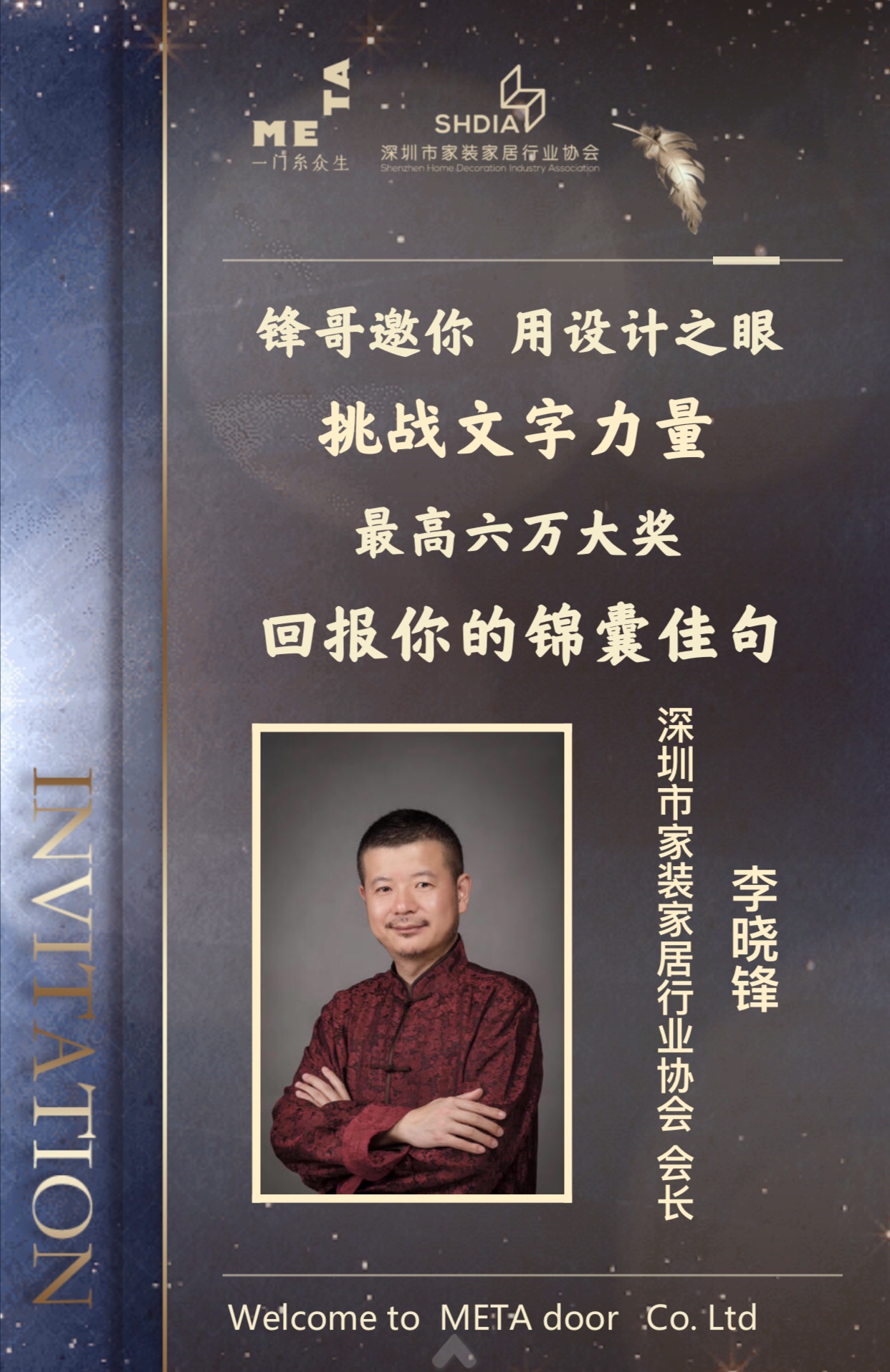 品牌為產(chǎn)品賦予生命動(dòng)力,廣告為品牌注入創(chuàng)新活力。富有創(chuàng)意的廣告語(yǔ)能讓品牌在市場(chǎng)上快速建立辨識(shí)度,搶占市場(chǎng)先機(jī)。家居設(shè)計(jì)師既有對(duì)建材之美的慧眼獨(dú)具,也有豐富的設(shè)計(jì)靈感,但設(shè)計(jì)師的能力絕不僅限于此。深圳市家裝家居行業(yè)協(xié)會(huì)李曉鋒會(huì)長(zhǎng)表示:很多人說設(shè)計(jì)師動(dòng)手能力很強(qiáng),語(yǔ)言功能比較弱化,我認(rèn)為設(shè)計(jì)師的能力遠(yuǎn)不限于此,所以借此機(jī)會(huì)邀請(qǐng)全國(guó)設(shè)計(jì)師用設(shè)計(jì)之眼挑戰(zhàn)文字力量。