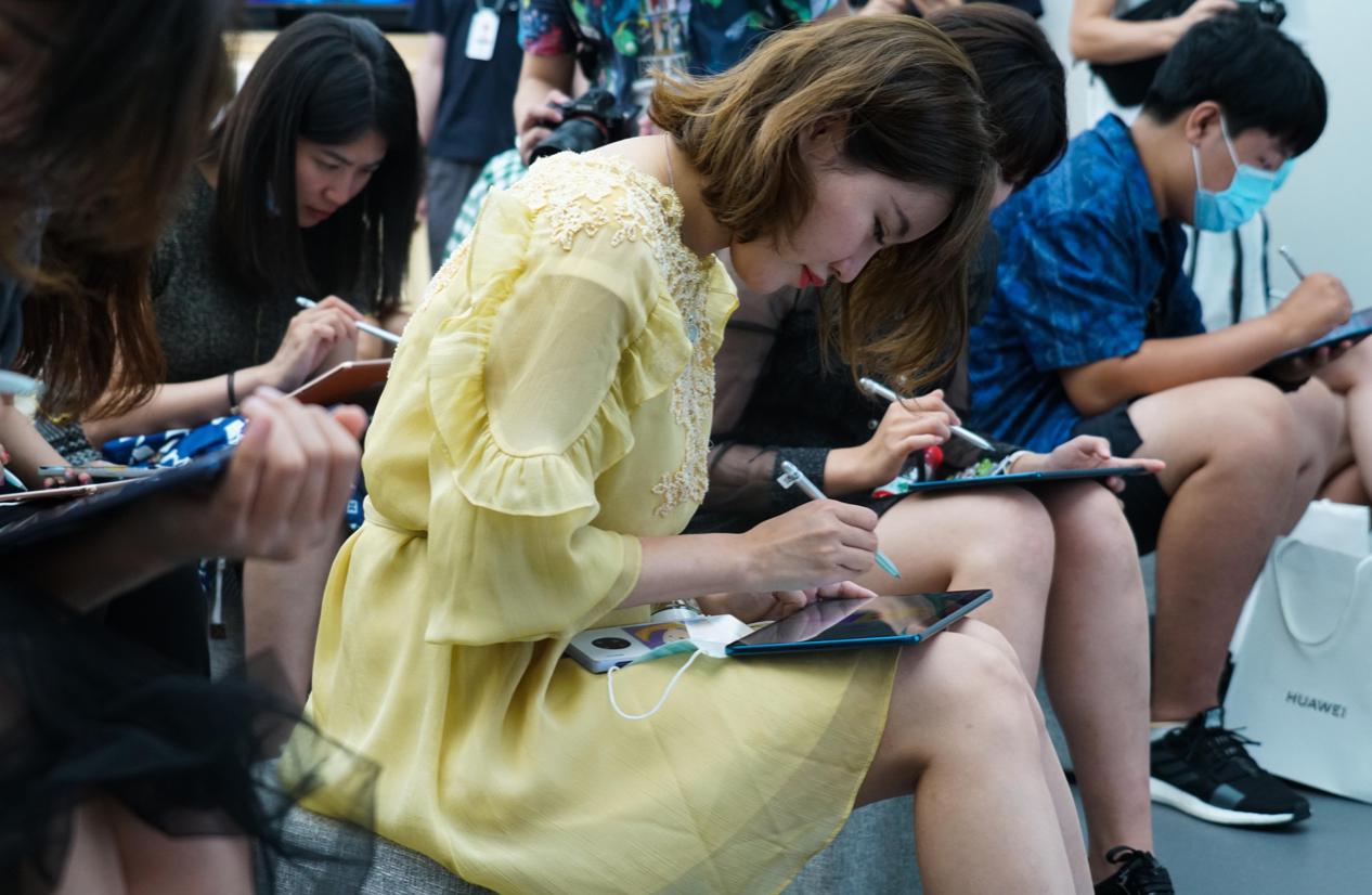 活動中,大家以華為MatePad Pro為畫板,以HUAWEI M-Pencil為畫筆,用線條肆意勾勒出自己心中的美好夏日。健美糖老師也從構圖、色彩、光影等方面對大家進行一對一指導。