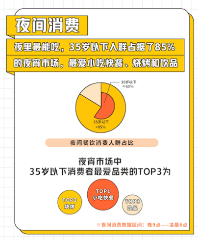 夜間消費在周末餐飲消費中備受年輕人青睞?!?020周末餐飲堂食消費趨勢洞察》顯示,35歲以下群體是周末夜間消費的主力,占比近九成,且最愛小吃快餐、燒烤和飲品三大品類。
