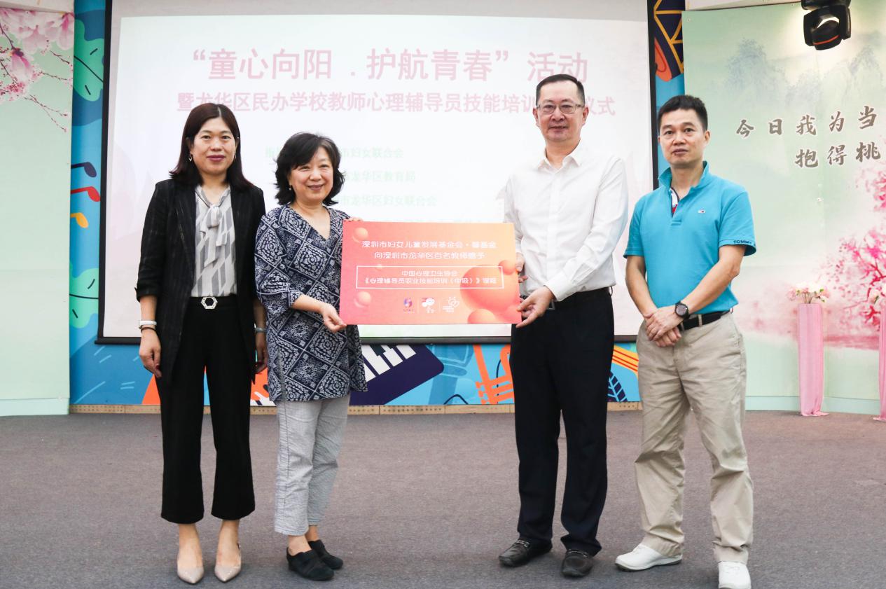 活動(dòng)現(xiàn)場(chǎng),深圳市婦女兒童發(fā)展基金會(huì) ·馨基金向龍華區(qū)32所民辦學(xué)校100名教師捐贈(zèng)了由中國(guó)心理衛(wèi)生協(xié)會(huì)開展的《心理輔導(dǎo)員職業(yè)技能培訓(xùn)(中級(jí))》課程。深圳市婦女兒童發(fā)展基金會(huì)·馨基金發(fā)起人方瑛說(shuō),青少年從家庭走入社會(huì)、面臨角色轉(zhuǎn)換時(shí)極易遭遇心理問(wèn)題,舉辦本次活動(dòng)的初衷是希望通過(guò)從培訓(xùn)100名老師開始,關(guān)愛(ài)影響更多的孩子,也希望能匯聚更多各方資源,惠及更多的青少年。