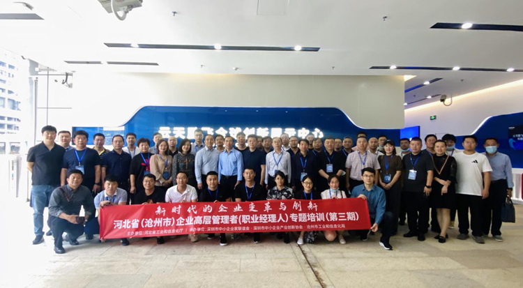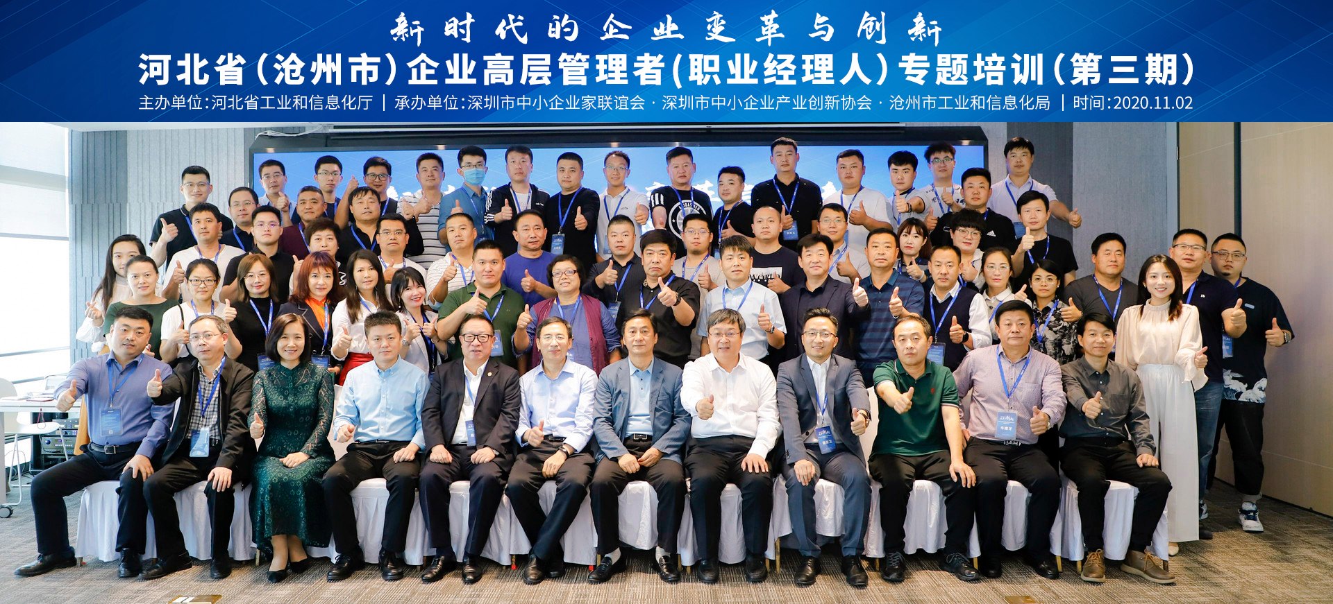 見圳客戶端·深圳新聞網(wǎng)2020年11月9日訊 近日,由河北省工業(yè)和信息化廳主辦,深圳市中小企業(yè)家聯(lián)誼會、深圳市中小企業(yè)產(chǎn)業(yè)創(chuàng)新協(xié)會、滄州市工業(yè)和信息化局承辦的“新時代的企業(yè)變革與創(chuàng)新——河北省中小企業(yè)高層經(jīng)營管理者(職業(yè)經(jīng)理人)專題培訓(xùn)(滄州班)”在深圳隆重開班。來自滄州市產(chǎn)業(yè)集群龍頭企業(yè)、優(yōu)秀民營企業(yè)、“專精特新”企業(yè)、培育擬上市企業(yè)的董事長、總經(jīng)理等共計56人參加培訓(xùn)。