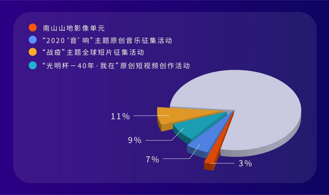 此外,短片節(jié)首次設(shè)立的“2020‘音’響”主題原創(chuàng)音樂征集活動在全球范圍內(nèi)共收到參賽作品447部,并將圍繞“最佳原創(chuàng)視頻配樂”、“最佳原創(chuàng)短片配樂”、“最佳原創(chuàng)短視頻配樂”和“優(yōu)秀原創(chuàng)配樂”等,評選4大類型最佳入圍作品。