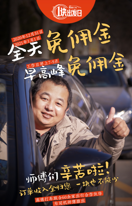 高德打車大數(shù)據(jù)預計,2020年12月31日、2021年1月1日跨年兩日,將成為全年打車的又一高峰。為了讓司機多勞多得、安心跨年,讓乘客跨年出行打車更快,高德打車聯(lián)合60多家出行合作伙伴推出“跨年兩天全天免傭金”活動,乘客付多少司機就能收入多少。