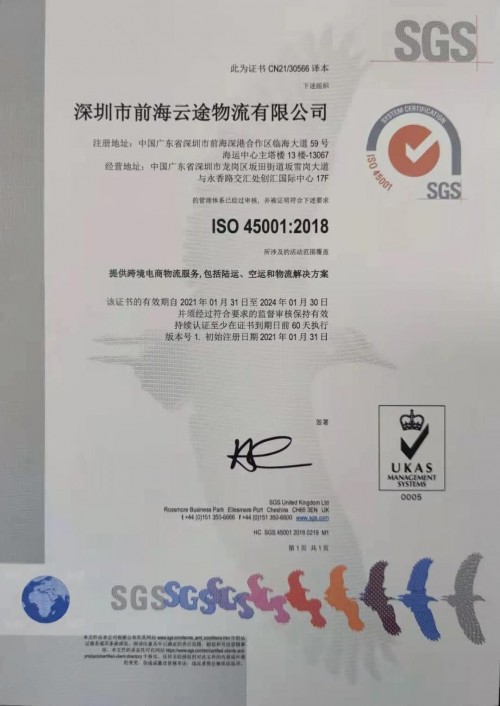 東方網(wǎng)2021年3月11日訊 繼2020年初獲得ISO9001質(zhì)量管理體系認(rèn)證后,近日云途物流順利通過專家組評(píng)審,再次獲得由國際公認(rèn)的檢驗(yàn)、鑒定、測(cè)試和認(rèn)證機(jī)構(gòu)SGS頒發(fā)的ISO14001環(huán)境管理體系、ISO45001職業(yè)健康與安全管理體系認(rèn)證。
