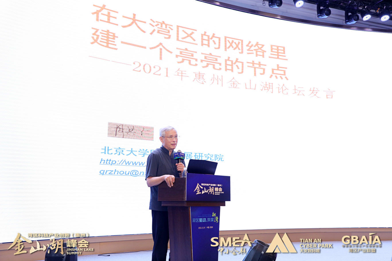 北京大學(xué)博雅資深講座教授周其仁進(jìn)行題為《在大灣區(qū)的網(wǎng)絡(luò)里建一個亮亮的節(jié)點(diǎn)》的主旨演講