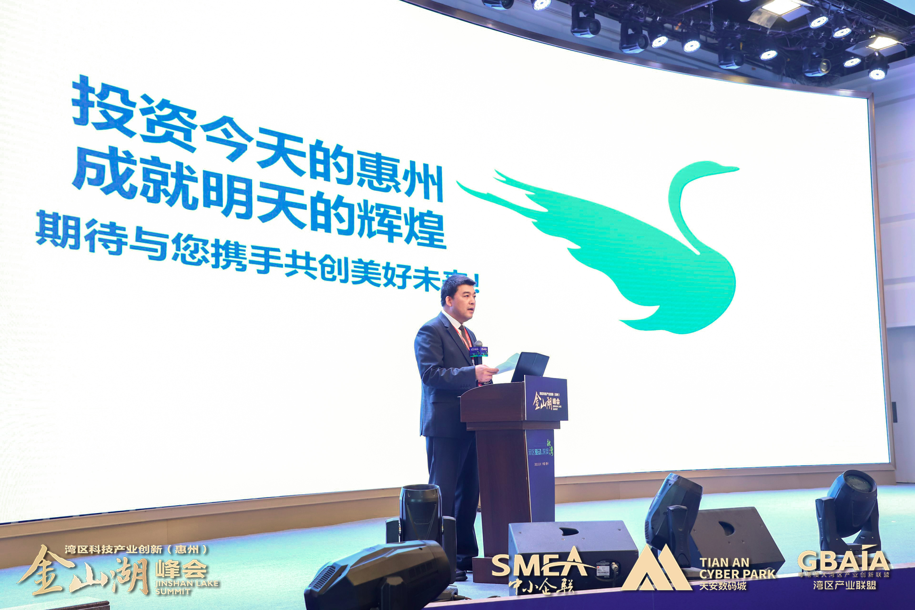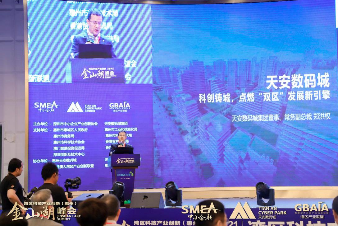 “‘雙區(qū)’建設(shè)是國家領(lǐng)導(dǎo)人和黨中央部署的重大國家戰(zhàn)略,作為粵港澳大灣區(qū)重要節(jié)點(diǎn)和深圳都市圈重要成員,全力支持、積極融入既是惠州鮮明的政治態(tài)度,也是惠州發(fā)展的必然抉擇。相信在惠州市及各級政府部門支持下,深圳市中小企業(yè)產(chǎn)業(yè)創(chuàng)新協(xié)會、天安數(shù)碼城集團(tuán)強(qiáng)強(qiáng)攜手,與各方合作伙伴共同努力,通過每年一屆的“灣區(qū)產(chǎn)業(yè)創(chuàng)新(惠州)金山湖峰會”深入落實創(chuàng)新驅(qū)動發(fā)展戰(zhàn)略,匯聚粵港澳大灣區(qū)產(chǎn)業(yè)創(chuàng)新資源,深化粵港澳創(chuàng)新合作,助力惠州與灣區(qū)城市間的產(chǎn)業(yè)創(chuàng)新與協(xié)同發(fā)展。