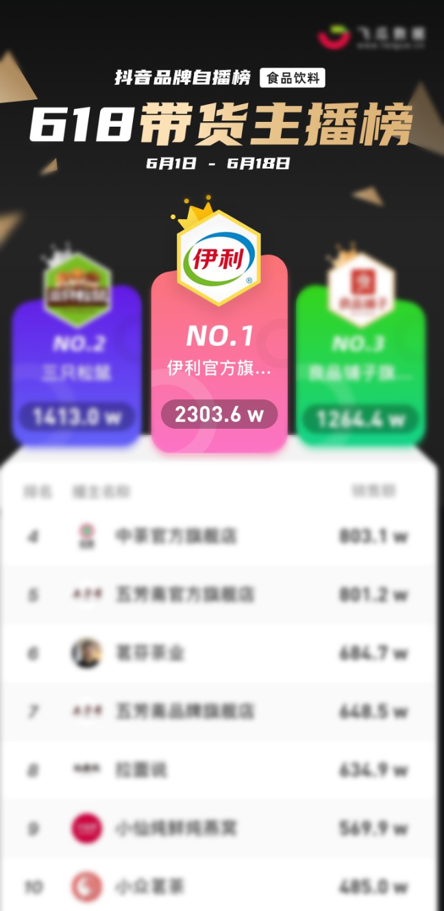 安慕希打造首個抖音乳品狂歡日,伊利品牌位居當日食品飲料榜 TOP1
