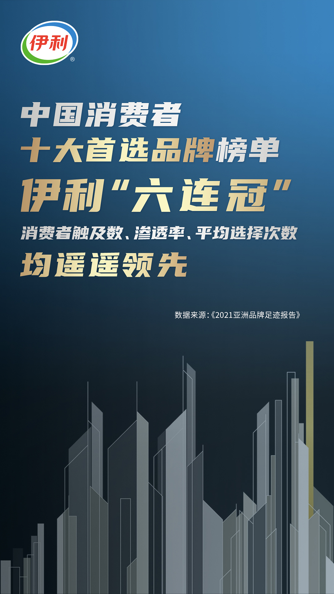 伊利連續(xù)六年成為消費者選擇最多的品牌榜首